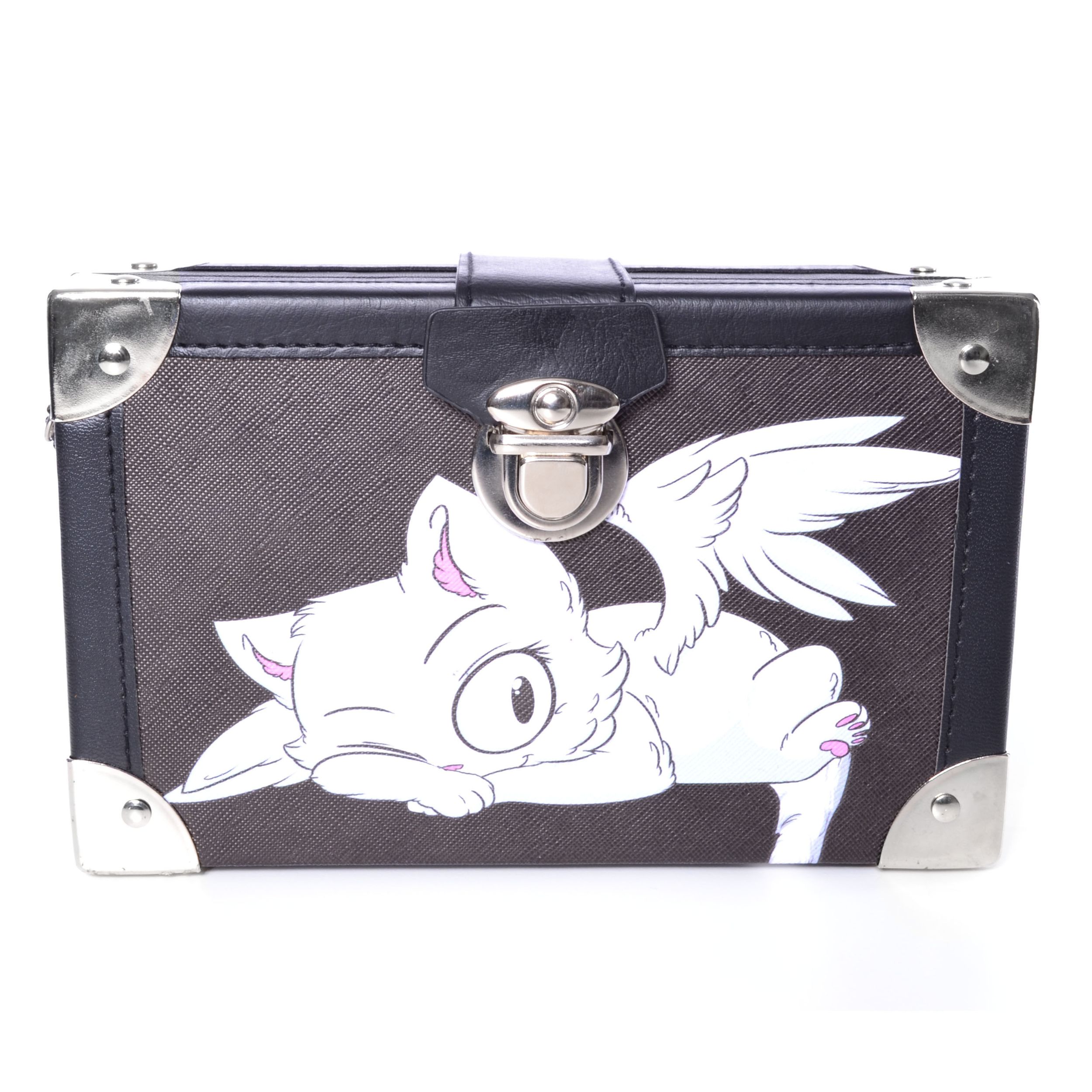 This fab cute cat bag is a small clutch type bag with long chain perfect for any cat lover depicting a cute white cat.
