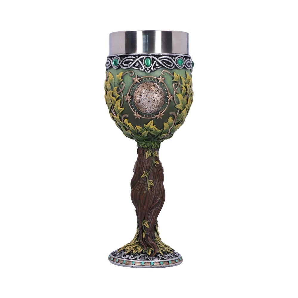 Lush green foliage winds it way up the goblet and in its centre sits a golden full moon surrounded by stars. Cast in finest resin and handpainted this goblet would adorn any sacred space or home.
