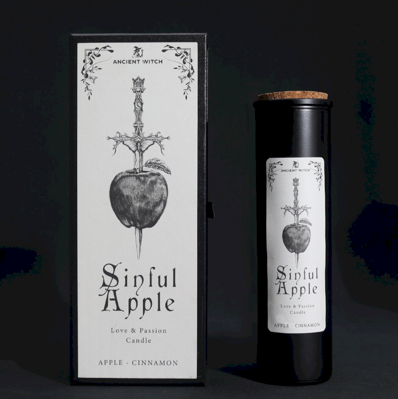 Perfect for love spells or confidence rituals, this candle stirs the energy of temptation and courage. The athame and apple evoke the thrill of pursuing what truly calls the soul.